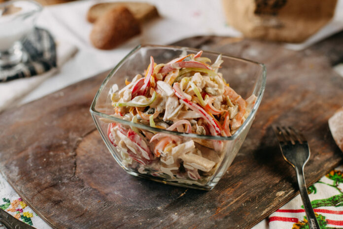 - Заправьте майонезом и подавайте к столу.